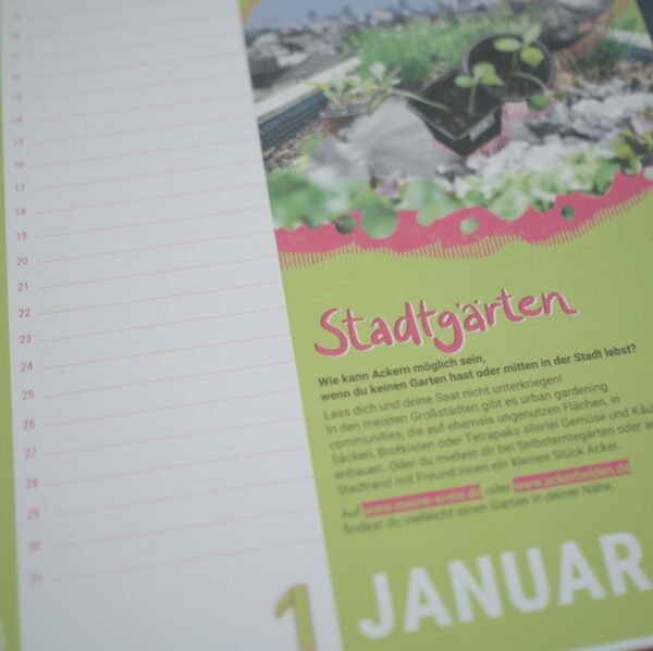 Bestelle jetzt den Kalender für dich, Freund:innen oder Familie. So gelingt das Jahr voller Alternativen und Projekten, die Hoffnung auf Agrarwende machen.